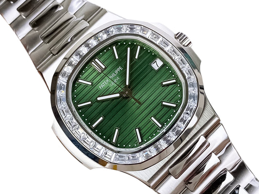 Nautilus Stainless Steel with Green Dial and Diamond Bezel (40mm)