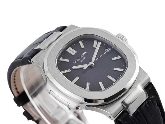Nautilus Stainless Steel with Grey Dial on Leather Strap (40mm)